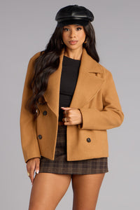 Your cold-weather power piece. This faux wool double-breasted coat brings timeless tailoring and soft structure—an instant upgrade to every outfit, from latte runs to after-hours plans.