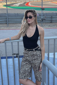 Running Wild Leopard Mid Rise Bermuda Denim Shorts