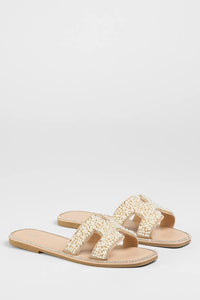Simple Poise Faux Pearl Rhinestone Flat Sandals