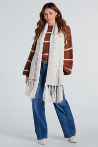Cozy Cutie Cable Knit Fringe Scarf