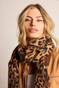 Wrap yourself in this fierce leopard print scarf for a cozy fab look. Pair with a coat.