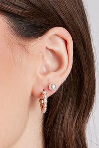 Match your mood with any of the earrings in this six-pack set! Features one pair of faux pearl studs and huggies, one pair of sleek metal ball studs and huggies, and one pair of rhinestone studs with sleek metal huggies. Complete the look in a matching set for day or night plans!