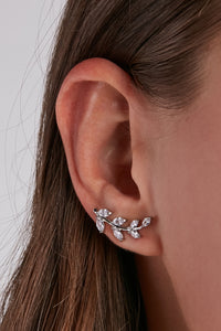 Radiate sparkly perfection with these elegantly embellished ear crawlers! The set of two features a curved design with gorgeous cubic zirconia stones in dainty leaf shapes. The earrings feature a fish hook to secure them into place. Style with a rhinestone choker necklace.