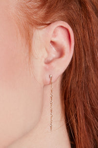 These dainty glam rhinestone duster earrings have the prettiest details! They feature a round rhinestone stud with a cascading chain with leaf-shaped rhinestones attached to the back closure. Style with an embellished hair clip.