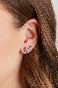 Glitzy and chic, these rhinestone earrings are a must-have. They feature a round rhinestone stud with an attached hook with an under-the-ear design with cascading rhinestone fringe. Style with a dainty choker necklace.
