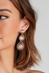 Make a wish and these starburst earrings will be yours! They feature a linear silhouette, rhinestone insets, and a post-back closure. Complete the look in a matching set for a cute daytime outing.