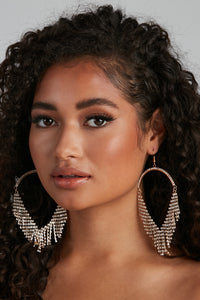 Upgrade to diva status in these teardrop-shaped earrings featuring cascading rhinestone fringe and a fish hook with a rubber-back stopper. Complete the look in a classy LBD.