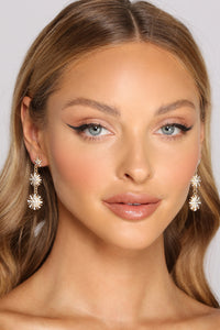 Illuminate the night in these stunning statement earrings! They feature a triple star-shaped design embellished with rhinestones for major sparkle. Complete the look with a dainty necklace.