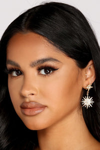 Show off your dazzling style with earrings that bring the shine to your outfit! The earrings feature a starburst design on post and an attached larger starburst with rhinestones. Includes a post-back closure. Complete look with an LBD.