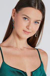 Bring the glam with an earrings and necklace set that showcases your luxe side! The set features a double-row rhinestone necklace with a teardrop gemstone. The matching earrings feature a teardrop gemstone design. Complete look with a satin dress and heels.