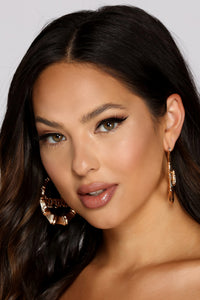 Bring the shine to your outfit with cute earrings that are part boho, part glam! The earrings feature a vertical rhinestone bar with a chain-link accent attached and a tassel end with rhinestone details. Complete look with a romper and wedges.