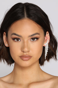 Secure your spot on the A-list with a rhinestone ear crawler that slays! The ear crawler features a double row of rhinestone studs and a multi-row rhinestone fringe accent. Complete the look with a velvet mini dress.