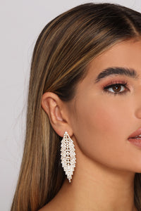 Let your beauty radiate in these glamorous statement earrings! They feature a teardrop-shaped design with small and large rhinestones for a gorgeous look. Accessorize your long formal dress with these earrings and style with a sparkly clutch.