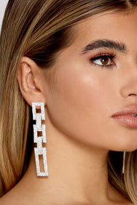 Accessorize your dressy outfit with these chic statement earrings to bring radiance to your look. They feature a cascading chain-link design with all-over rhinestone embellishment. Complete your look with a sparkly clutch.