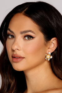 Radiate your natural beauty with floral earrings that enhances the romance to your look. The earrings feature a floral design with a rhinestone center and a post-back closure. Complete look with a mini dress and wedges.