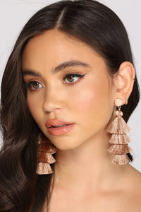 Trendy and chic, these statement tassel earrings will elevate your look. They feature a round post connected to four tiers of threaded tassels. Pair these earrings with a casual dress and sandals.