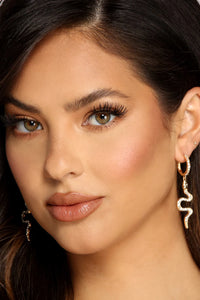 Rep these huggies that bring a stylish edge to your look. The huggies feature a small hoop and an attached snake charm that is embellished with rhinestones. Complete look with a distressed tee shirt and biker shorts.