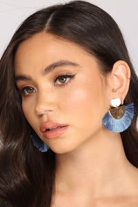 Showcase your bohemian flair with these gorgeous statement earrings. They feature a hammered metal post connected to a half circle-shaped metal detail with a hammered design and fanned out tassels. Pair these on-trend earrings with a flowy mesh duster.