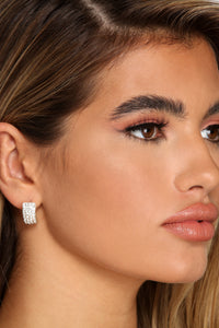 Chic and stunning, these stud earrings will elegantly elevate any outfit! They feature a round cubic zirconia stone in a square design outlined by mini rhinestones. Pair these earrings with a dainty tennis bracelet for a pretty look.