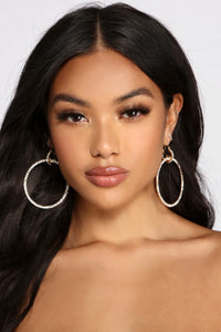 Rock a look that is so extra with these hoops! The hoops feature an open-end design and a thick flat metal band. Complete the look with a stylish jumpsuit and heels.