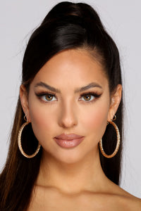 Add a gorgeous glam vibe to your look with these trendy hoop earrings! They feature a large thick hoop with a textured wrap design and an omega closure. Pair these earrings with your fave chic catsuit and strappy heels.