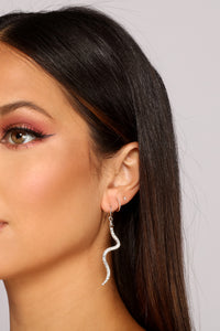 Showcase a fierce and glam look in these duster earrings! They feature a cascading snake design with mini rhinestones adorned. Pair these trendy earrings with a graphic tee and a faux leather mini skirt for a look that will slay.
