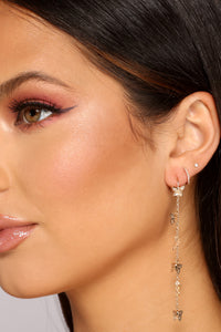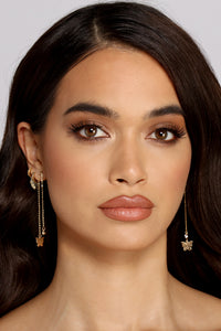 These dainty butterfly duster earrings will add a flirty vibe to your 'fit! They feature a linear cascading chain link design with tiny detailed butterfly charms. Pair these earrings with a basic tee to add some glam to your look.