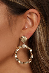 Add a glam touch to your look with these glitzy rhinestone hoop earrings! They feature a large hoop earring with a twisted rhinestone design. Pair these hoops with a basic tee and distressed denim to elevate your everyday casual 'fit.