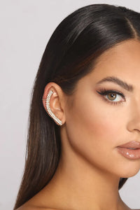 Add a hint of shine with earrings to dress up your casual looks! The studs feature a crawler design and a single row of 6 rhinestones. Complete your look with high waist skinny jeans and chunky sneakers.