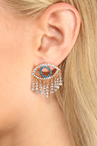 Elevate your glam look to a chic, trendy vibe with these rhinestone eye design studs!