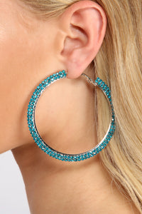 Live in the moment, and live for a pop of color in your life! These shining teal hoops are a vacay must have and would look stunning paired with a tropical dress!