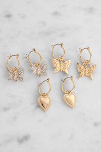 Popular earring trends right now include playful and edgy designs like butterfly charms, bow designs, rhinestone hearts, ear cuffs, and gemstone duster earrings. These styles effortlessly elevate both casual and formal outfits, adding the perfect finishing touch.