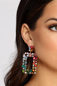 Finish your look with a pop of color! This rhinestone door knockers are a chic way to compliment an all black outfit, and a low bun!