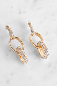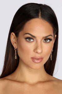 We wanna link you up with some style! These earrings are a chic chain link design, first link adorned with rhinestones and have a post back closure, second link a simple sleek design, and third link a thick hoop encrusted with rhinestones as well.
