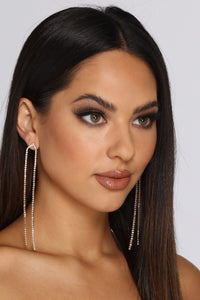 Drop them hints, babygirl! These simple duster earrings are embellished in gorgeous rhinestones for a bit of bling. Finished with a post back closure.