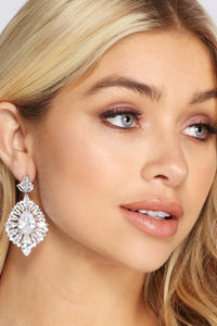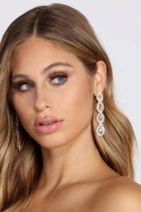 Babe you look ready to pop some champagne! These dusters feature a dangling four tier teardrop design that leads from small to large with a double halo and a post back closure.
