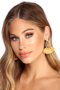 Have an infinitely pretty look with these gorg tassel earrings! They feature a gold infinity shaped post attached to a teardrop shape with mustard yellow tassels fanning out. Includes a post back closure.