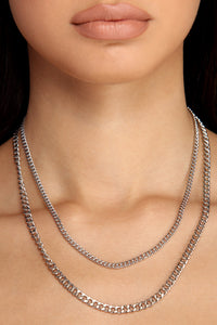 These simple silver layered chain link necklaces are the perf addition to any outfit! They feature two rows, the shorter row a smaller daintier chain and the longer one a thicker chain link. Includes adjustable lobster clasp closures.