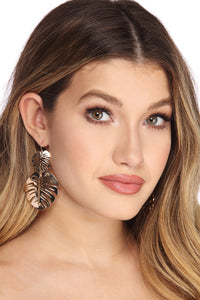 Add a tropical touch to your look with these must have gold earrings! They feature two dangling metal palm leafs and a hook closure.