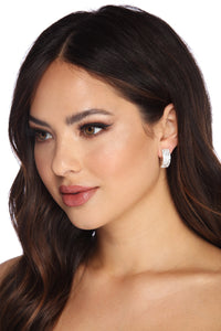 Come through dripping with plenty of shine as you sparkle from any angle with these show stopping earrings. They feature a multi faceted rectangular shaped gemstone design with silver outline accents.