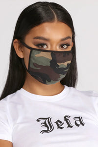 Stay safe in this camo face mask that won’t clash with your fit! Fitted with a soft breathable knit, a camo print with black trim, and earloops for a comfortable customized fit.