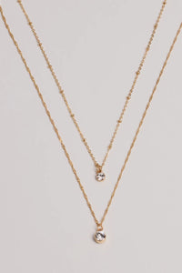 This layered necklace features rhinestone charms on a dainty chain secured with a lobster clasp closure. Perfect for styling with a blouse or dress.