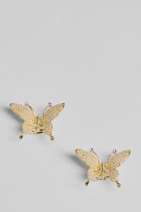 Glam Rhinestone And Pearl Butterfly Earrings Set