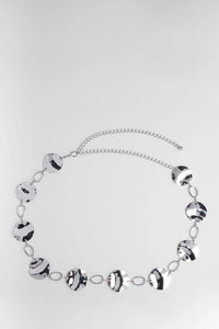 Effortless and bold, make a statement in this chain belt with textured round plates and a lobster clasp closure to secure the style.