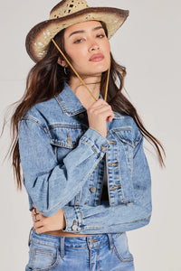 A straw cowboy hat features a distressed wide curved brim with rope trim and an adjustable rope to get a snug fit. Style with cowboy boots for a concert.