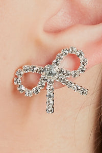 Simply glam, these rhinestone bow stud earrings will showcase a chic sparkle. They feature an adorable small bow design adorned with mini rhinestone embellishments and a center round rhinestone accent. Complete your look with a dainty tennis bracelet.