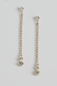 These linear earrings feature twinkling rhinestones for the perfect glamorous look. Style with a formal dress and clutch.