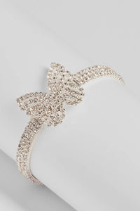 Wish upon love with this stunning rhinestone butterfly bracelet! Adorned with sparkling rhinestones with an open side accent, this bracelet will add a touch of elegance and charm to any outfit. Complete the look with fringe rhinestone earrings for a striking evening out!