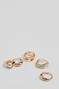 Stylish Stack Chunky Rhinestone And Pearl Ring Set