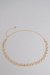 Create a statement look with this chic belt! This eye-catching belt features interlocking rings that catch the light with every movement.